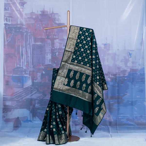Banarasi sarees are made in Varanasi, an old city which is also called Banaras in Uttar Pradesh in India . Banarasi sarees are specially used for wedding , festives and parties because of its heavy and rich weaving and embroidery . Even with the technology , people in Varanasi still use hand weaving techniques to weaves intricate desgins with gold and silver threads to make this gorgeous Banarasi saree intricate and complex designs makes this saree stunning and fabulous. These gorgeous and elegant sarees have become every women’s first choice when it comes to sarees .